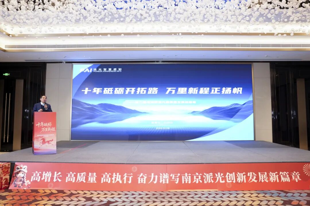 石峥映董事长在题为《十年砥砺开拓路 万里新程正扬帆——奋力谱写南京派光高质量发展新篇章》的总结动员讲话中,回顾了公司十年磨一剑的发展历程,梳理了已取得的阶段性足迹,阐述了公司2026年的重点任务,并明确了清晰务实的战略打法及具体举措。讲话凝聚了共识,鼓舞了士气,为全体派光人指明了奋斗方向。同时,向长期以来指导、引领公司创新发展的各位专家致以最衷心的感谢和最崇高的敬意。